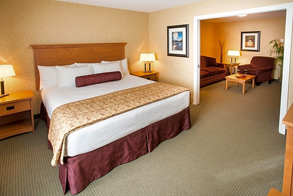 This suite allows for additional privacy with a King bed that is separated by pocket doors from the main room. The main area has a queen sofa bed, lounge chair, fireplace and 42" flat screen TV.